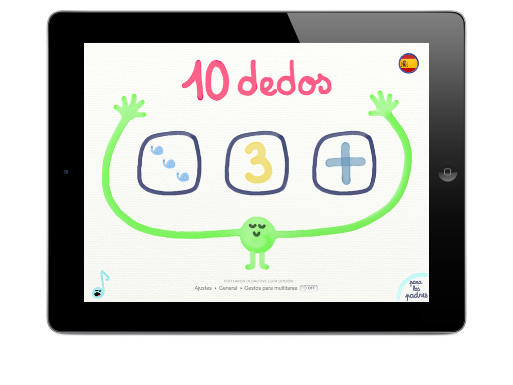 SE trata de 10 dedos de Marbotic, y se trata de un sencillo juego que utiliza la pantalla multitouch del dispositivo para que el niño use sus dedos como unidades para contar y crear cantidades.